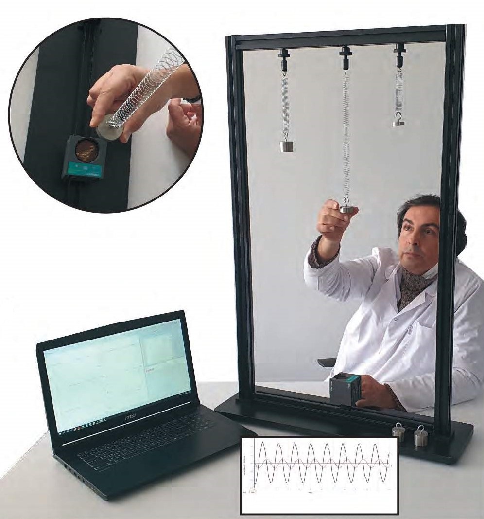 The datas are transfered to computer / tablet / mobile phone wireless with Vernier Go Direct Motion Detector. Constants of different types of springs can be calculated by using height measurement apparatus.